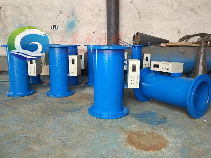 高頻電子水處理器是利用電子元器件產(chǎn)生的高頻交變電磁場,讓水在經(jīng)過水處理器時(shí),物理性能發(fā)生改變。由原來易吸咐在容器表面的斜方晶系晶體,變成不易吸附的三斜晶系的針裝晶體,從而在管壁上無法結(jié)垢,達(dá)到防垢的目的。由于水分子在磁場、電場的作用下減弱了垢鹽離子的結(jié)合,使垢鹽離子形成開垢表面,成為水合離子進(jìn)入水中,使受熱爐壁、管壁上原來的水垢逐漸軟化、疏松、自行脫落,起到除垢的作用。水中的細(xì)菌、藻類細(xì)胞因高頻電磁場、電場的作用,使細(xì)胞內(nèi)原生質(zhì)產(chǎn)生電離,影響細(xì)胞的正常代謝,導(dǎo)致菌藻死亡,起到殺菌、滅藻的作用。
