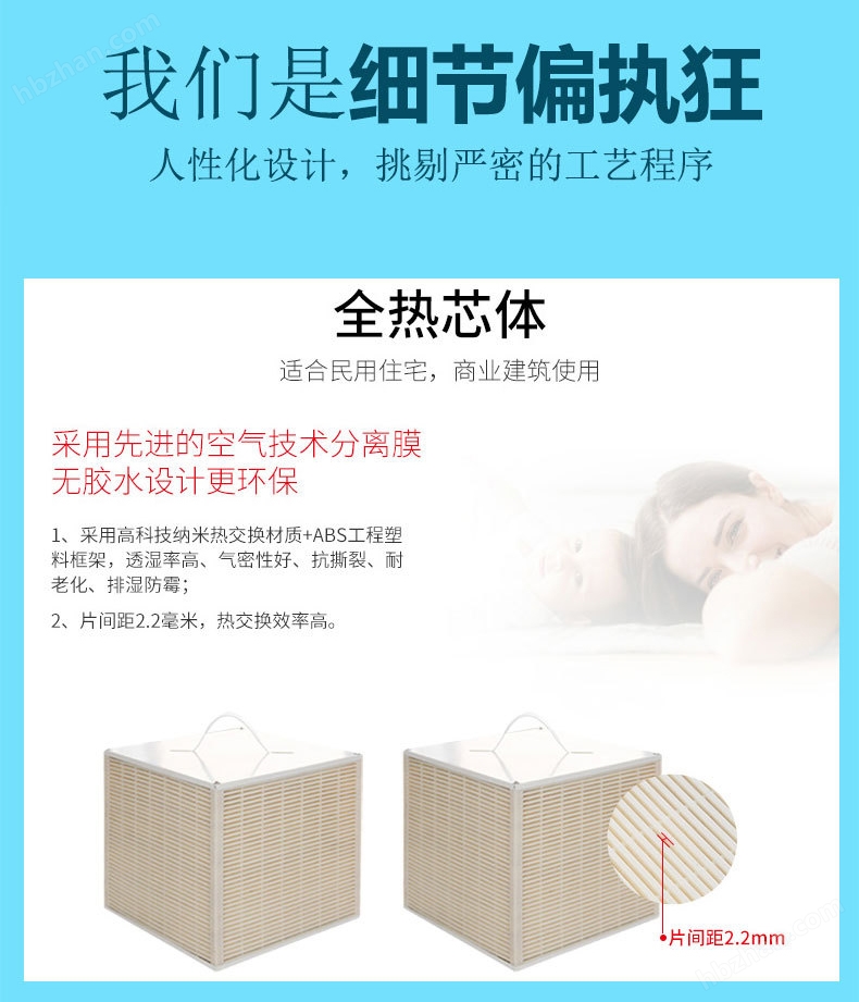 甶于纖維之間的間隙較小,只有粒徑較小的水蒸氣分子才能通過,其他粒徑較大,的有害氣體或異味氣體分 子無法通過,從而實現(xiàn)潛熱及顯熱的交換,又能避免空氣的交叉污染,且新排 風(fēng)分開,避免任何氣味空氣的傳遞。應(yīng)用于民用商用通風(fēng)系統(tǒng)的顯熱、潛熱的回收。