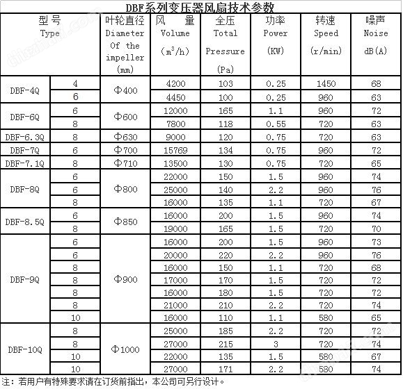 上虞億杰DBF/CFZ系列變壓器專(zhuān)用冷卻風(fēng)機(jī)是DZ系列派生出來(lái)專(zhuān)門(mén)為變壓器油冷卻器配套設(shè)計(jì)的低噪聲節(jié)能型風(fēng)機(jī),它適用于各類(lèi)大中型變壓器油冷卻器配套,具有性能穩(wěn)定、運(yùn)行效率高、噪聲低、振動(dòng)小、壽命長(zhǎng)等特點(diǎn)。