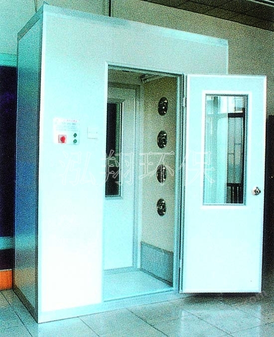 風(fēng)淋室人身凈化設(shè)備 他是利用高速潔凈氣流吹落進(jìn)入潔凈室人員服裝表面附著的塵粒。同事由于風(fēng)淋室的兩扇門是不同時(shí)開啟的,從而起到防止污染空氣進(jìn)入潔凈室的氣閘作用。
