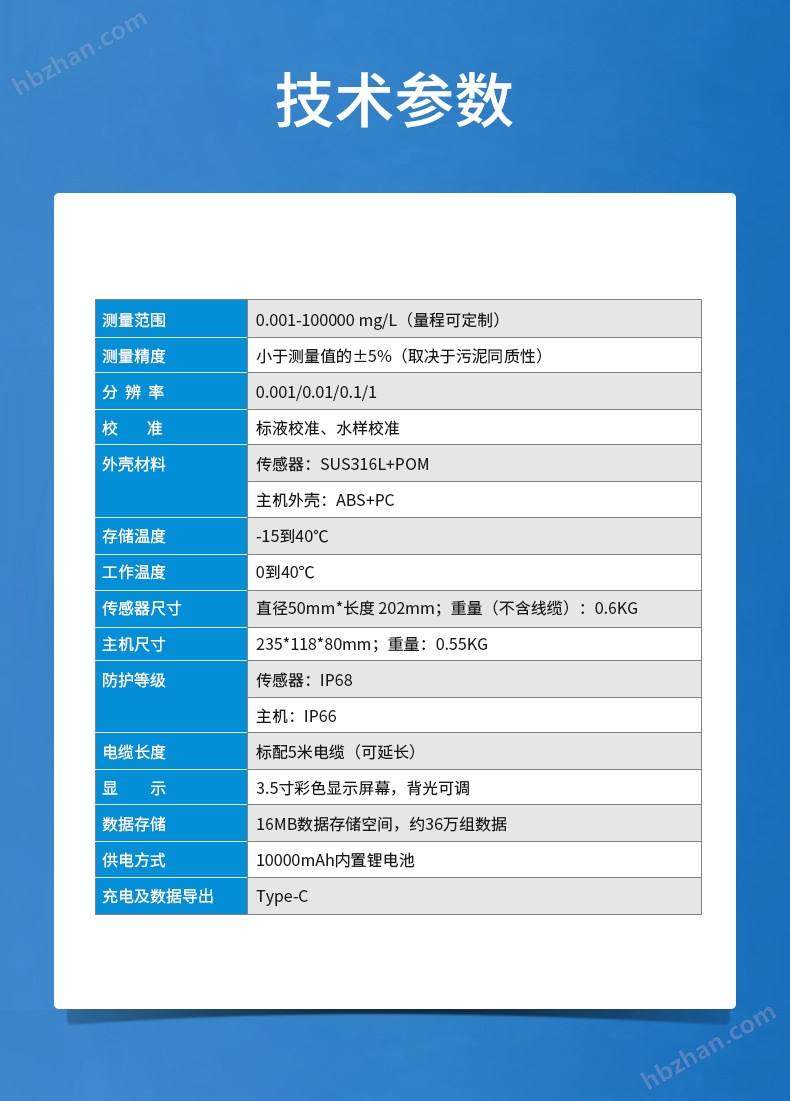 1、測量范圍:0.001-100000 mg/L(量程可定制)