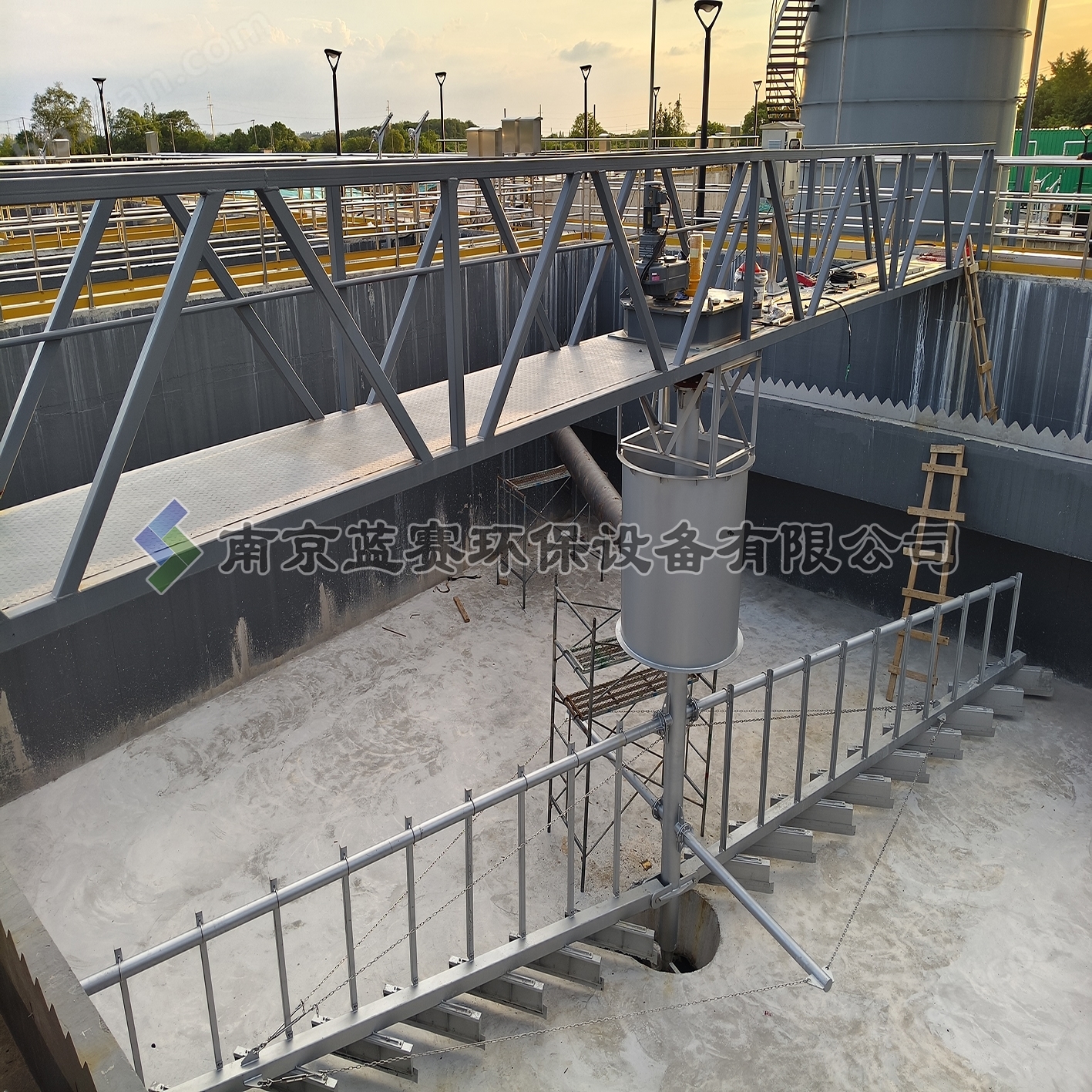 在驅(qū)動裝置的推動下,刮泥板繞池主軸旋轉(zhuǎn),刮泥板在隨旋轉(zhuǎn)的過程中,逐漸將沉降在池底上的污泥刮向池中集泥坑。