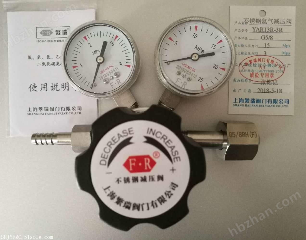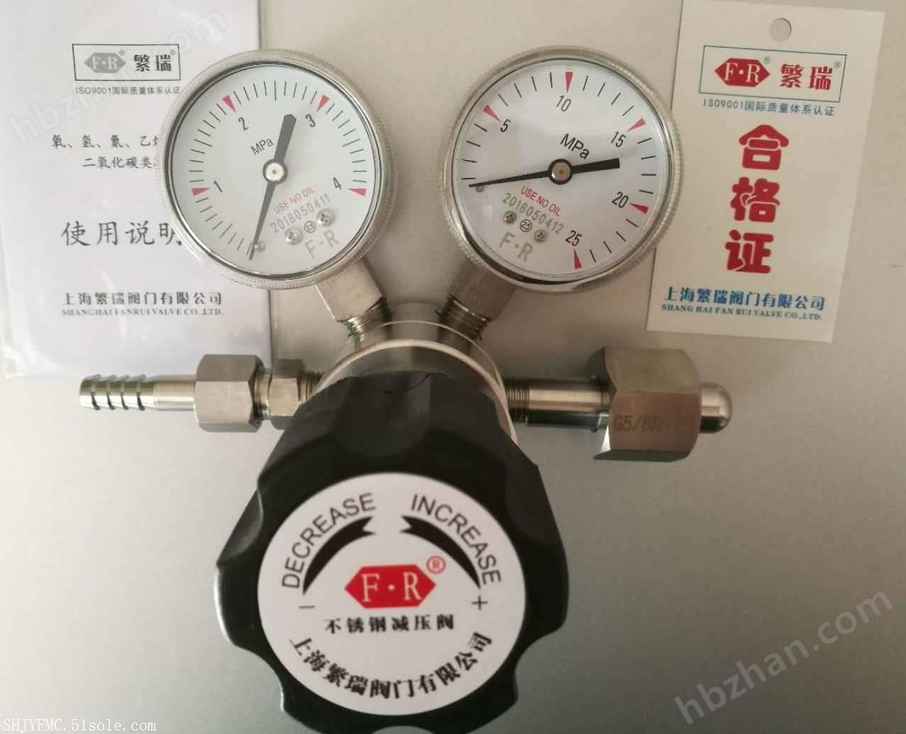 上海繁瑞閥門(mén)有限公司的不銹鋼高純氣體、特氣、氧氣、氫氣、氮?dú)?、氦氣、空氣、氬氣減壓閥生產(chǎn)廠家,輸出壓力穩(wěn)定,密封性能好,閥體帶過(guò)濾裝置,使用方便。閥體采用單級(jí)式結(jié)構(gòu),膜片與母體采用硬密封形式,母體接口螺紋:1/4''NPT(F) ,接氣體鋼瓶開(kāi)關(guān)閥QF-2、PF-2A、PX-32A、外徑22.8mm左右,使用溫度:-40℃至74℃,泄漏率:2X10ˉ He,CV值有:0.06、0.08、0.12、0.14、0.15、1.0、1.8、5.2等,母體材料:316L,閥座材料:PCTFE、PTFE、Vespel、Hastelloy,膜片:316L??捎糜诟鞣N高純氣體、醫(yī)療實(shí)驗(yàn)、儀表及分析、氣相分析、電廠設(shè)備、石油化學(xué)工業(yè)、氣體控制箱、吹掃系統(tǒng)、熱處理設(shè)備、氣體匯流排、腐蝕性氣體、有毒氣體、半導(dǎo)體等行業(yè)的氣體管路系統(tǒng)。閥體結(jié)構(gòu)輕巧是采用控制閥體內(nèi)的啟閉件的開(kāi)度來(lái)調(diào)節(jié)介質(zhì)的流量,將介質(zhì)的壓力降低同時(shí)借助閥后壓力的作用調(diào)節(jié)啟閉件的開(kāi)度,使閥后壓力保持在一定范圍內(nèi),特點(diǎn)是在進(jìn)口壓力不斷變化的情況下,保持出口壓力值在一定的范圍內(nèi),特點(diǎn)是輸出壓力大,穩(wěn)壓可靠,安全放心。