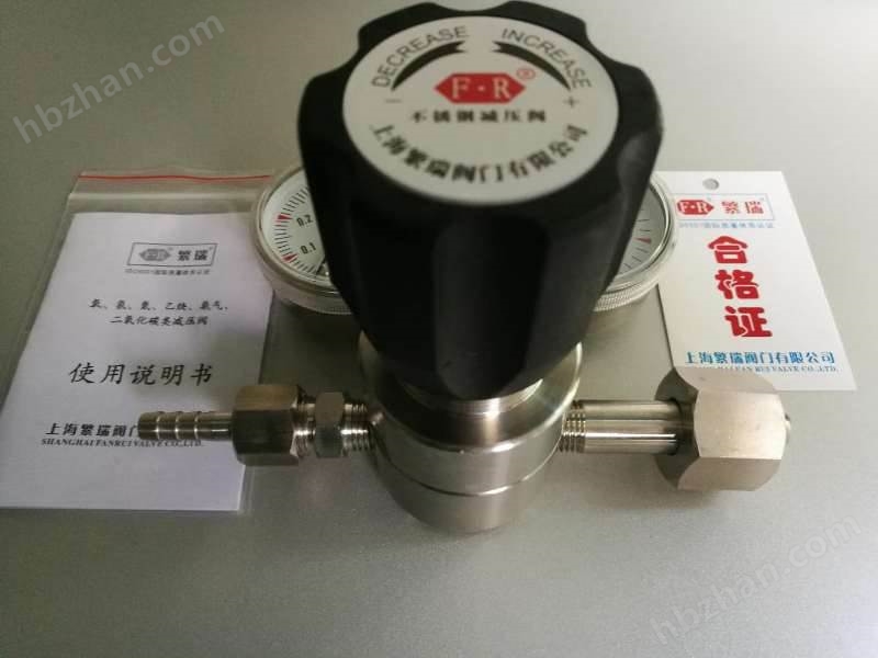 上海繁瑞閥門有限公司的不銹鋼高純氣體、特氣、二氧化碳減壓閥生產(chǎn)廠家,輸出壓力穩(wěn)定,密封性能好,閥體帶過濾裝置,使用方便。閥體采用單級(jí)式結(jié)構(gòu),膜片與母體采用硬密封形式,母體接口螺紋:1/4''NPT(F) ,接二氧化碳鋼瓶PX-32、PX-32A、QF-2、QF-2C等,外徑22mm左右,使用溫度:-40℃至74℃,泄漏率:2X10ˉ He,CV值有:0.06、0.08、0.12、0.14、0.15、1.0、1.8、5.2等,母體材料:316L,閥座材料:PCTFE、PTFE、Vespel、Hastelloy,膜片:316L??捎糜诟鞣N高純氣體、醫(yī)療實(shí)驗(yàn)、儀表及分析、氣相分析、電廠設(shè)備、石油化學(xué)工業(yè)、氣體控制箱、吹掃系統(tǒng)、熱處理設(shè)備、氣體匯流排、腐蝕性氣體、有毒氣體、半導(dǎo)體等行業(yè)的氣體管路系統(tǒng)。閥體結(jié)構(gòu)輕巧是采用控制閥體內(nèi)的啟閉件的開度來調(diào)節(jié)介質(zhì)的流量,將介質(zhì)的壓力降低同時(shí)借助閥后壓力的作用調(diào)節(jié)啟閉件的開度,使閥后壓力保持在一定范圍內(nèi),特點(diǎn)是在進(jìn)口壓力不斷變化的情況下,保持出口壓力值在一定的范圍內(nèi),特點(diǎn)是輸出壓力大,穩(wěn)壓可靠,安全放心。