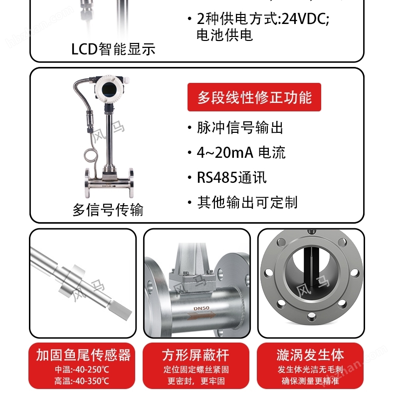 調(diào)換配件后一般無(wú)需重新標(biāo)定儀表系數(shù)。應(yīng)用范圍廣,蒸汽、氣體、液體的流量均可測(cè)量。