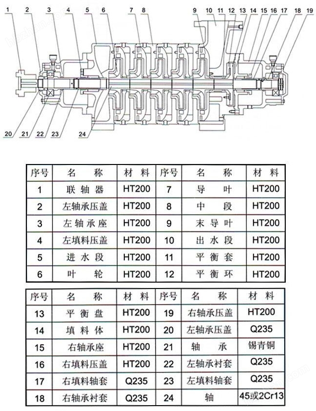 | 吸入、中、吐出段 | HT250 | ZGCr17Mo2-CuR | 鑄鋼或鑄不銹鋼 |