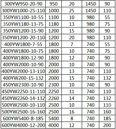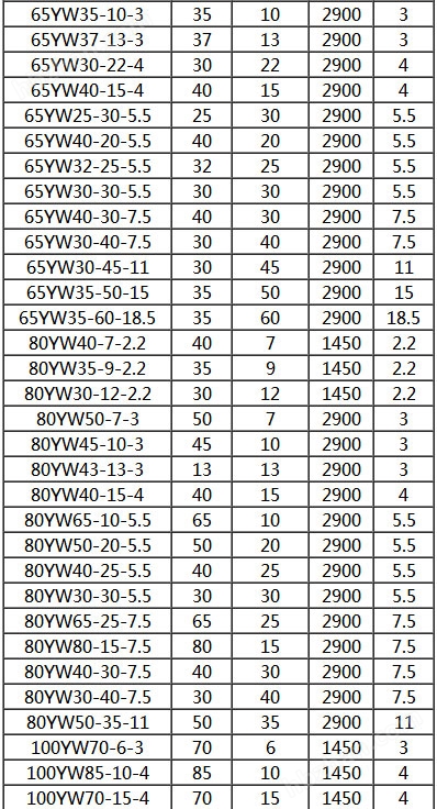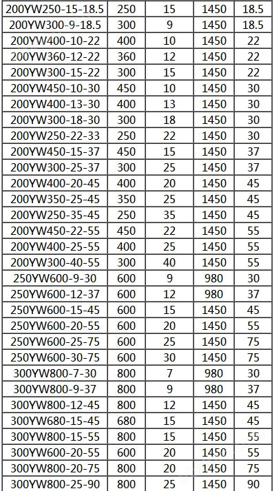 五、YW無堵塞液下排污泵性能參數(shù)表