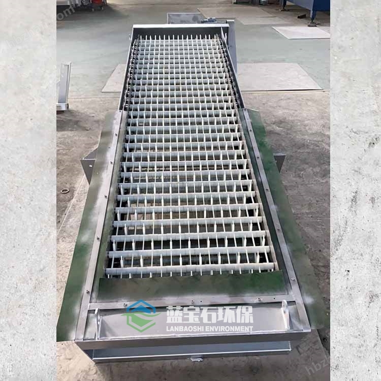 按水流方向耙齒鏈類同于格柵,在耙齒鏈軸上裝配的耙齒間隙可以根據(jù)使用條件進(jìn)行選擇。當(dāng)耙齒把流體中的固態(tài)懸浮物分離后可以保證水流暢通流過。整個(gè)工作過程是連續(xù)的,也可以是間歇的。