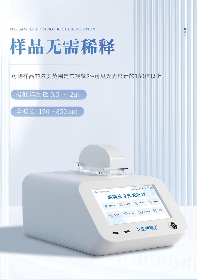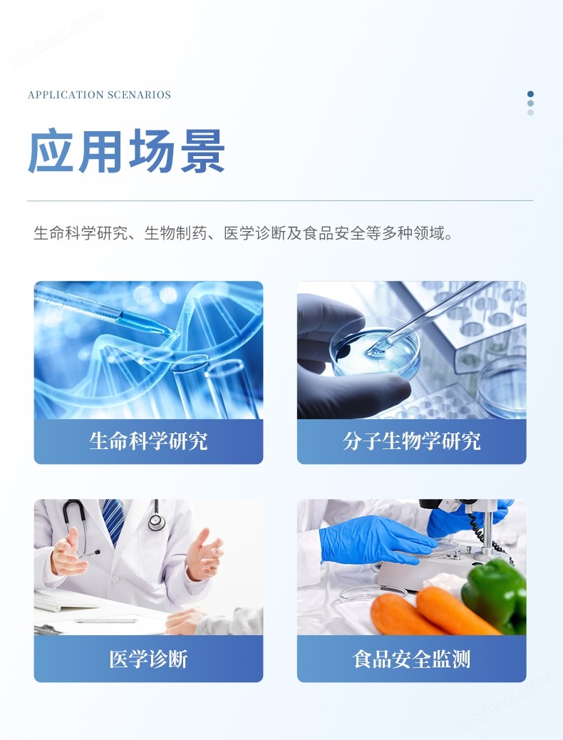 超微量分光光度計(jì)廣泛應(yīng)用于生命科學(xué)研究、生物制藥、醫(yī)學(xué)診斷及食品安全等多種領(lǐng)域。