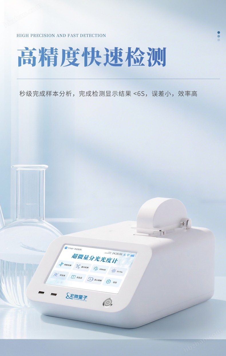 5、采用液柱表面張力技術(shù),實(shí)現(xiàn)0.5-2μL極微量樣品的快速檢測,無需比色皿或毛細(xì)管,顯著減少樣本損耗;