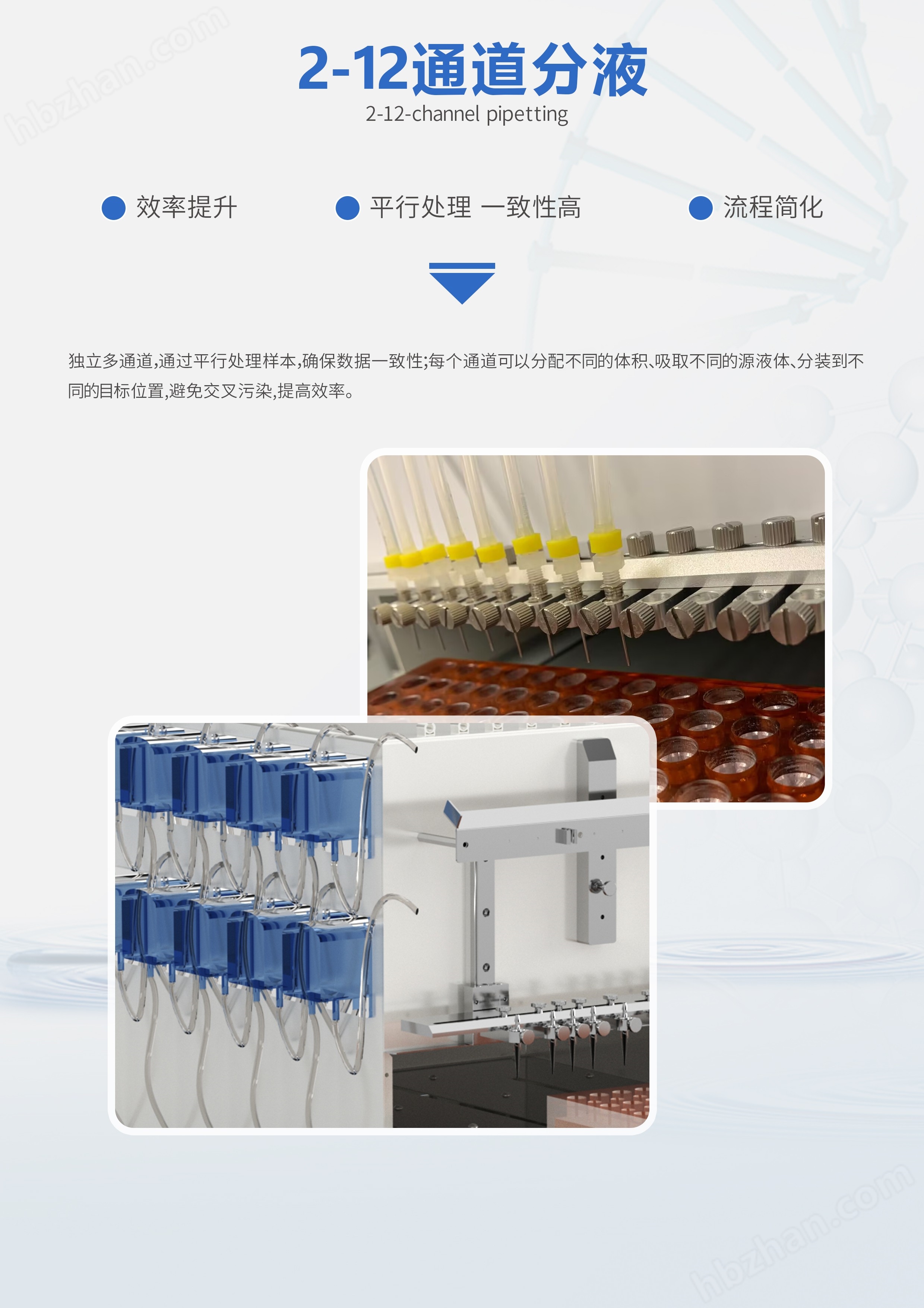 4-12通道(根據(jù)需求確定),每個(gè)泵單獨(dú)控制一個(gè)通道,分液通道可預(yù)留,各分液通道獨(dú)立,可單獨(dú)校準(zhǔn);