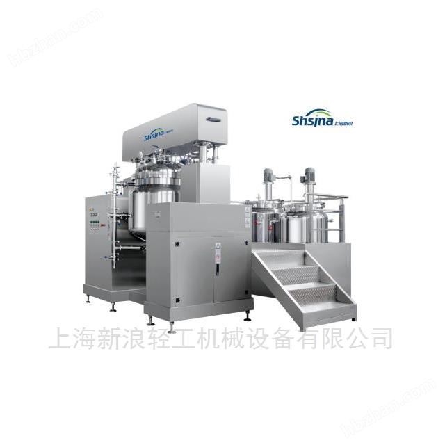 SXL系列XO沙茶醬真空均質(zhì)乳化機(jī)由乳化鍋(可升降鍋蓋、翻轉(zhuǎn)式鍋體)水鍋、油鍋、真空裝置、加熱及溫度控制系統(tǒng)、冷卻系統(tǒng)、電器控制系統(tǒng)等組成。原料在水鍋、油鍋內(nèi)通過預(yù)熱、攪拌進(jìn)行混合反應(yīng)后,由CBI分散系統(tǒng)在無外部動(dòng)力情況下產(chǎn)生的高速離心力同時(shí)吸入均質(zhì)工作腔體,在定轉(zhuǎn)子高速作用下所有物料瞬間被剪切、分散,再由乳化鍋上部雙向攪拌槳混合均勻;再通過內(nèi)外循環(huán)管路流回罐里,繼續(xù)混合、剪切,也可以通過切換管路閥門來調(diào)節(jié)循環(huán)路徑的長短,從而控制批次流量;