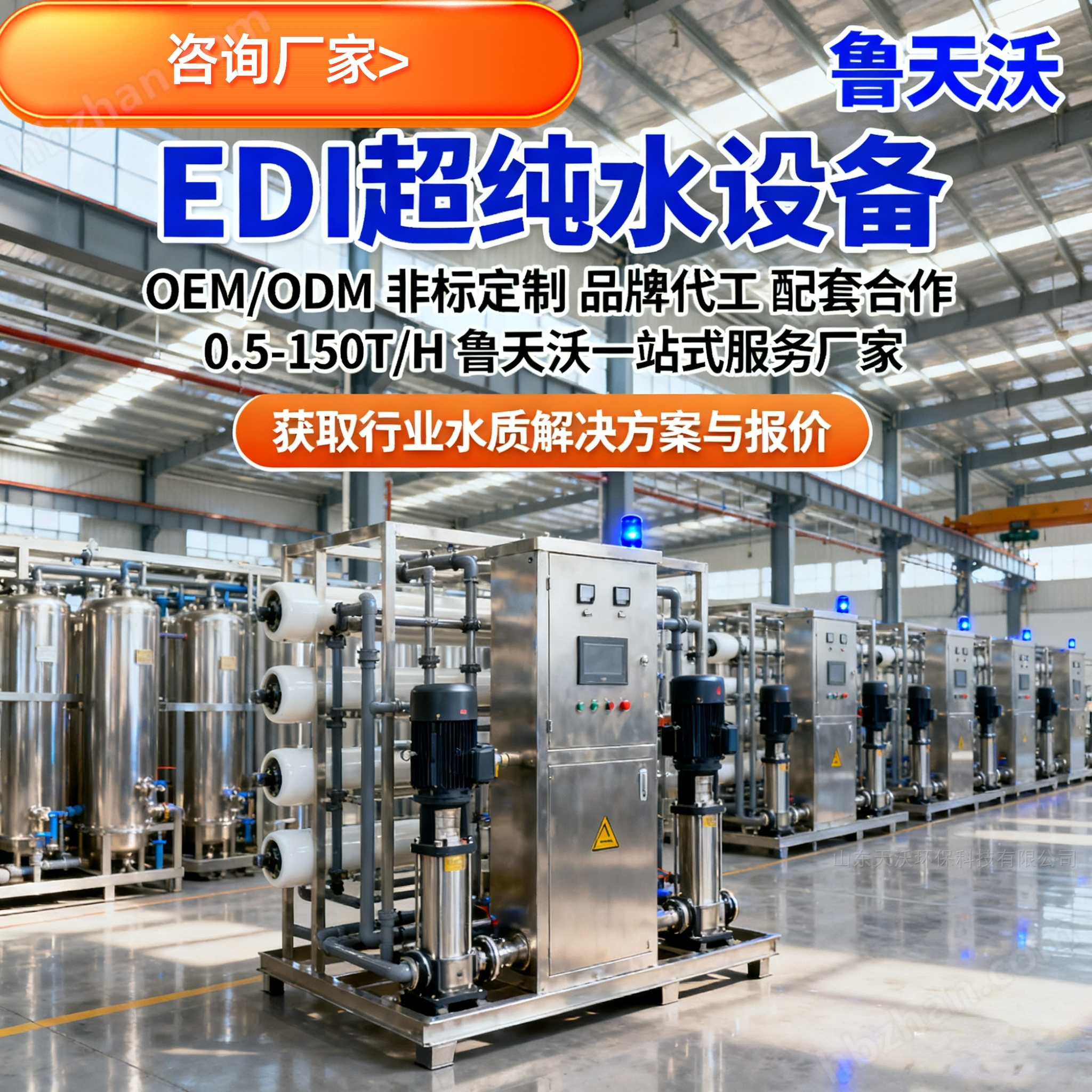 魯天沃化妝品生產(chǎn)純水產(chǎn)水量300~5000L/h,適配不同規(guī)模美妝生產(chǎn)需求 |