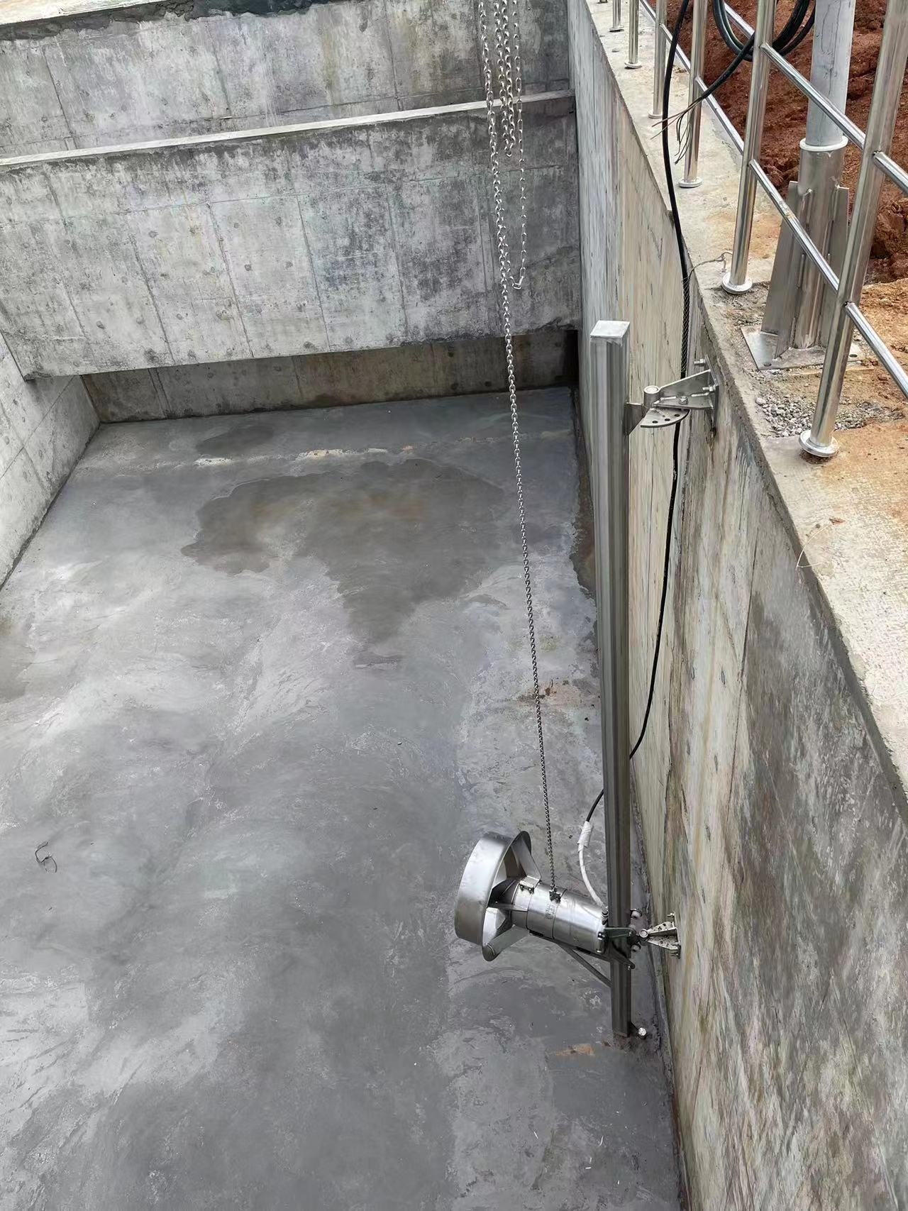 3.3.7將攪拌機的電纜及纜索固定于池邊。